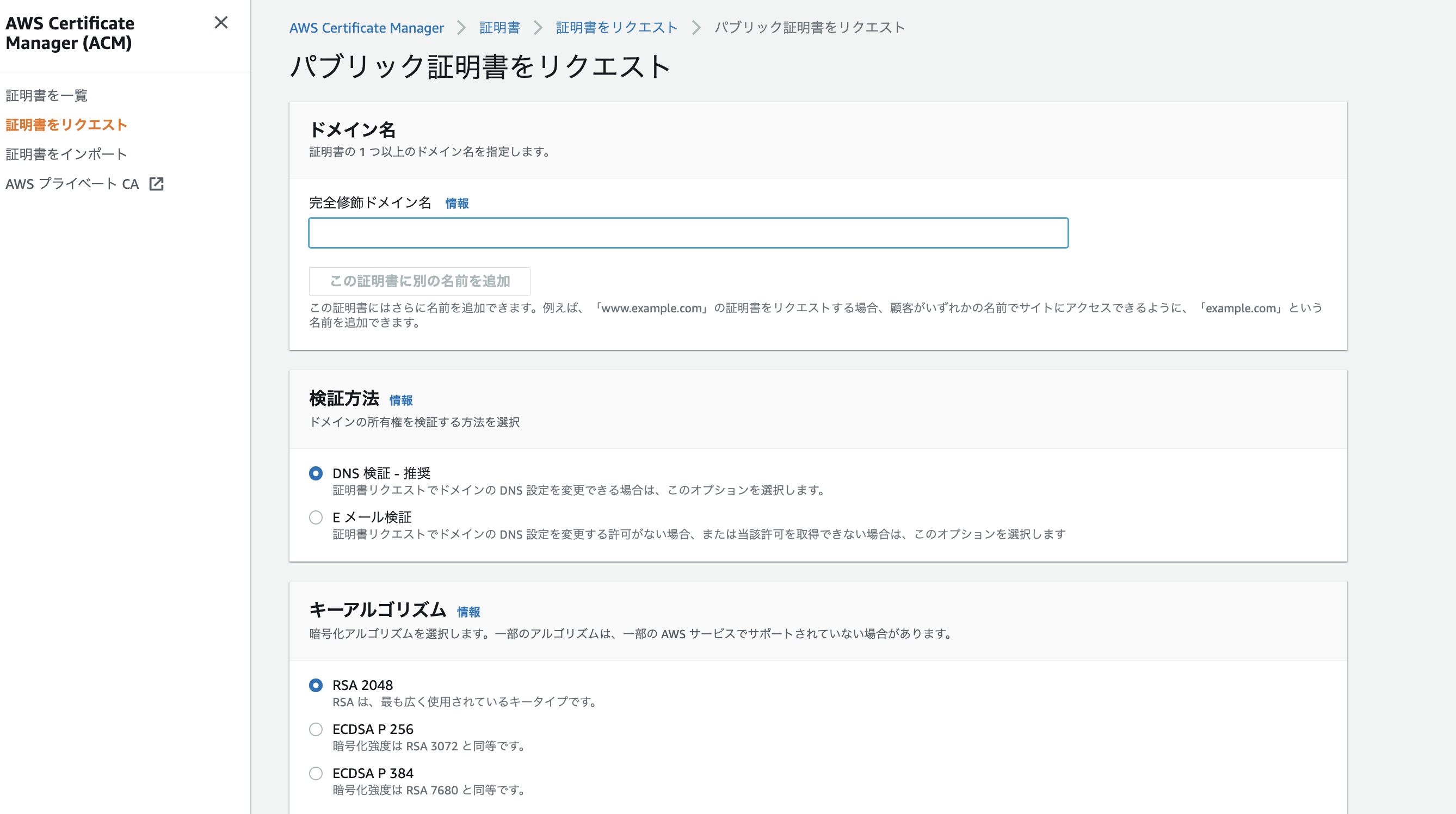 - ACM で証明書を作成する