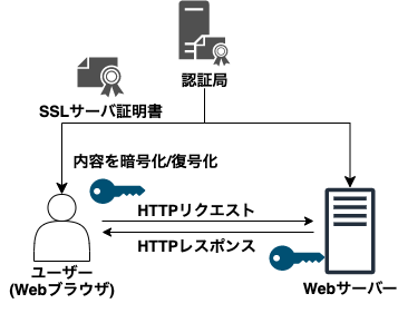 HTTPS の暗号化設定は、SSL サーバ証明書を利用する事で実現できる。