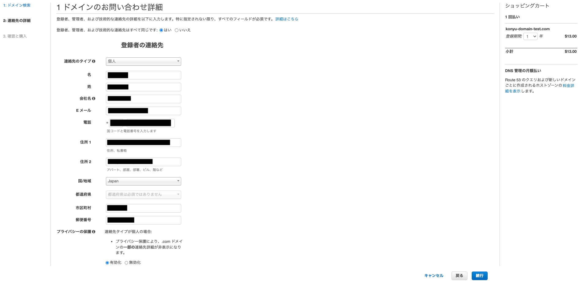 Route53 でドメインを取得する