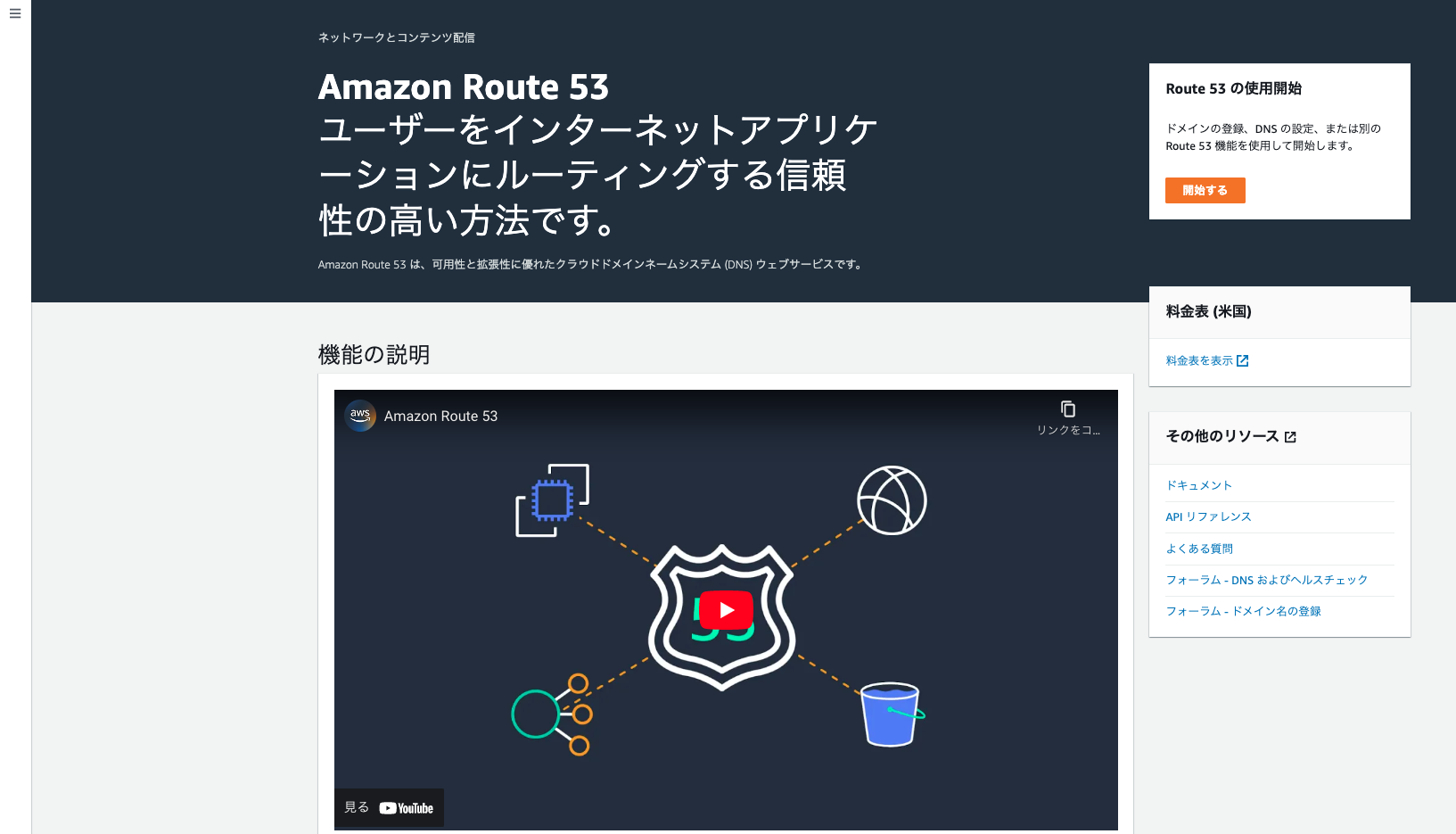 ちなみに AWS では、DNS の設定を行うサービス「Route 53」があるので、今回はこちらを使用する。また、この Route53 により、ドメイン名の登録・購入も行える。